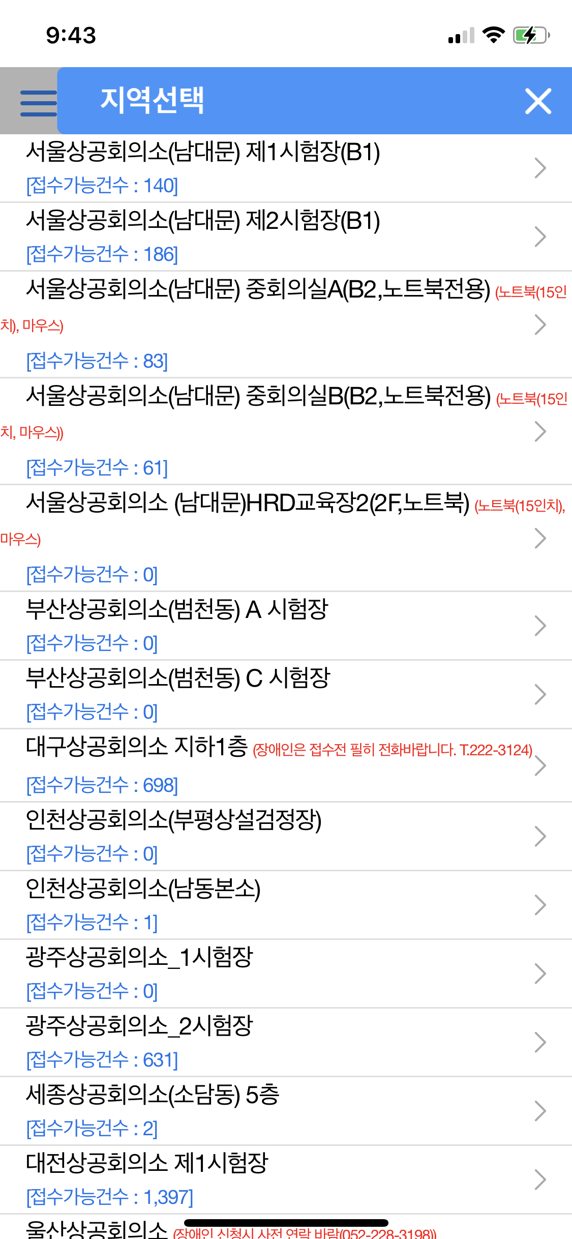 필기시험 접수는 실기 수업을 신청하기 전에 이미 했었는데, 상시 시험임에도 불구하고 시험 접수하기가 하늘의 별따기였다. 그런데 오늘 한번더 들어가보니 서울은 지금 자리가 많네?! (아마 저 자리들도 곧 사라질 것이야..) 부산은 시험장도 하나 더 늘었다. 내가 접수할 때는 상공회의소 A시험장 하나밖에 없었는데..