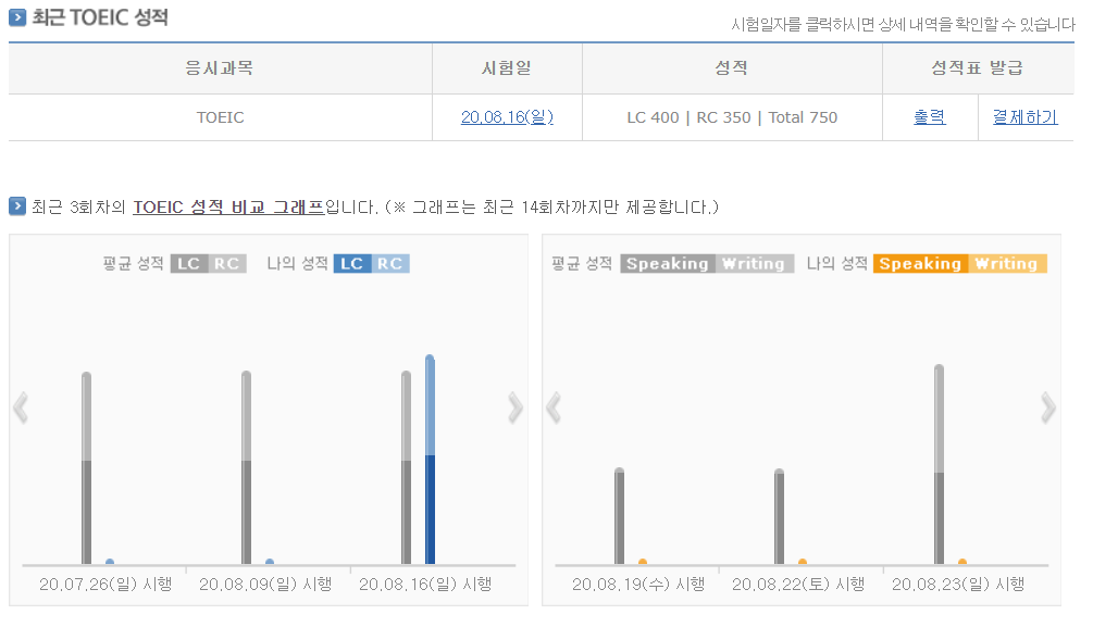 모바일로는 점수만 나와서 몰랐었는데, 인터넷으로 보니 비교 그래프도 함께 나왔다.