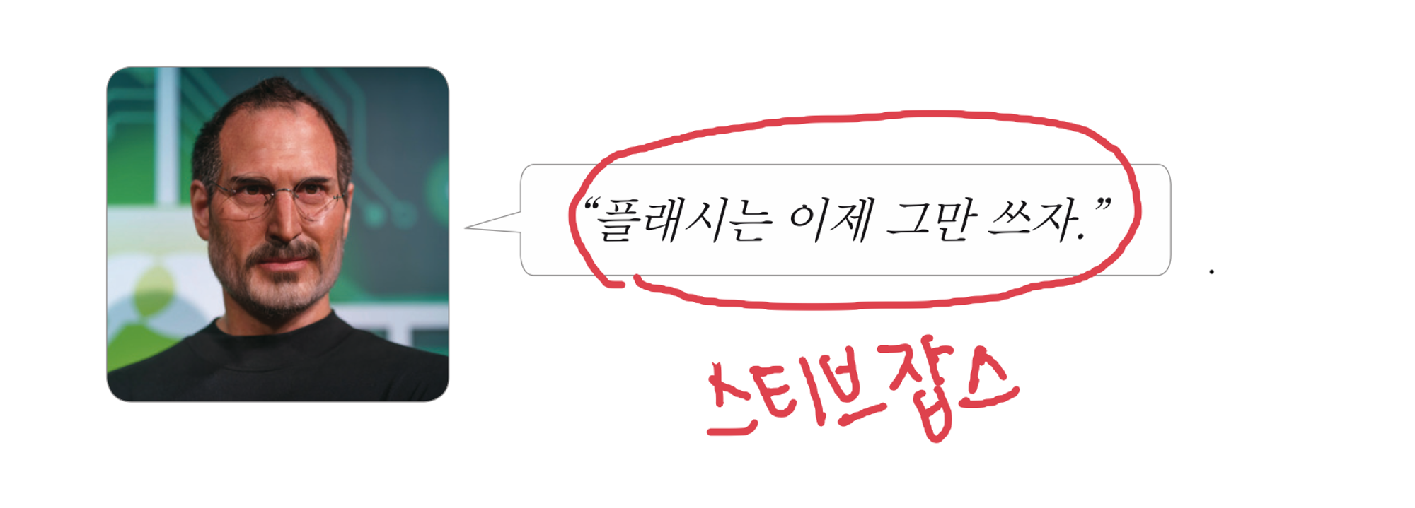 또 재미있었던 부분은 플래시 이야기였다. 스티브잡스가 플래시를 그만쓰자고 하며,