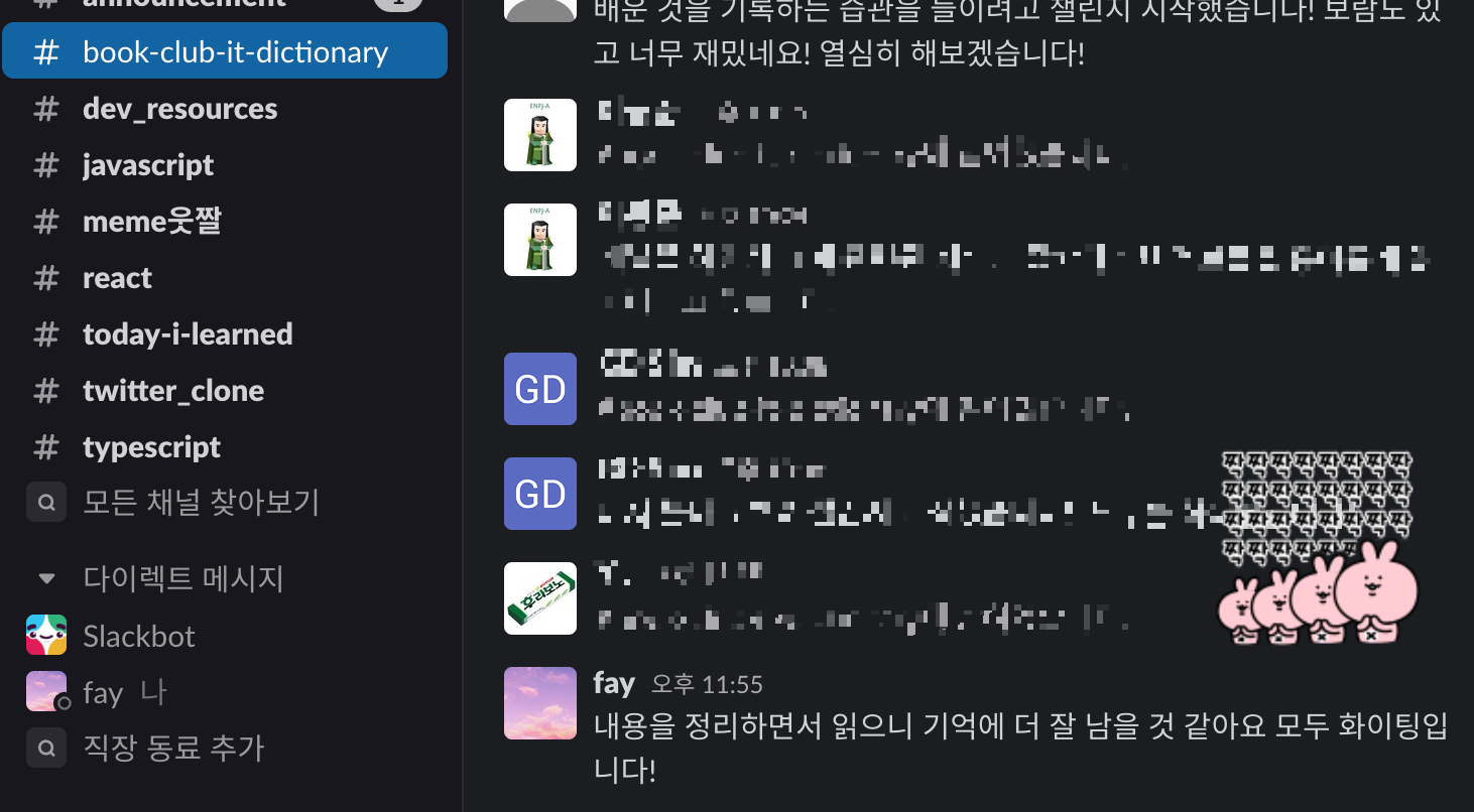 그리고, 슬랙 사용해보기 과제가 있길래..ㅎㅎ 과제 따라 해보았다 :)