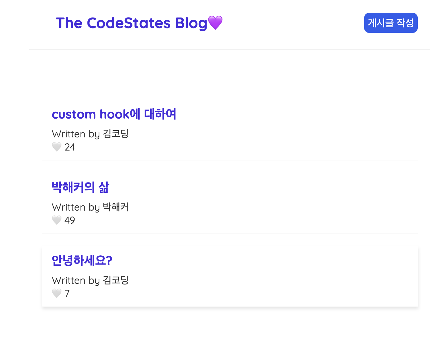 - BlogDetail.js createBlog.js CRUD ๊ตฌํ