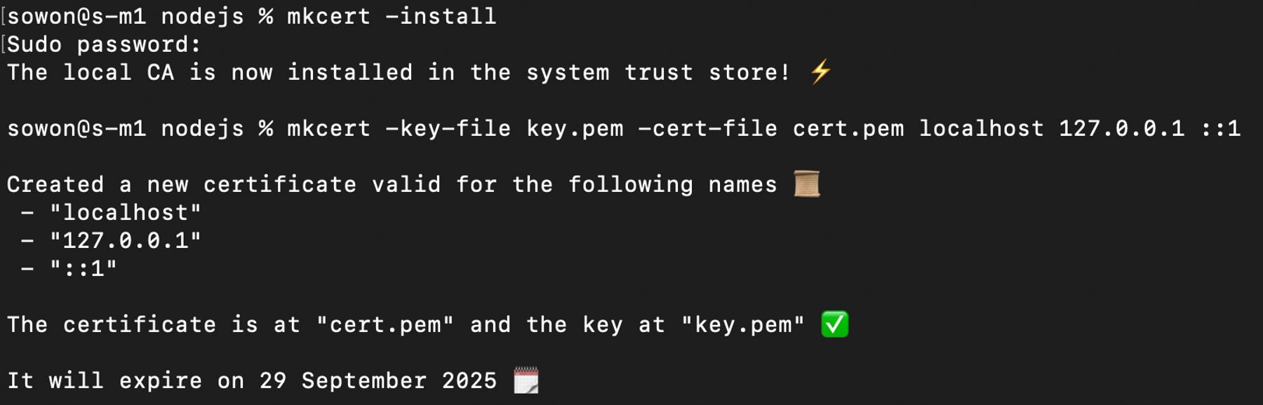 $ mkcert -key-file key.pem -cert-file cert.pem localhost 127.0.0.1 ::1